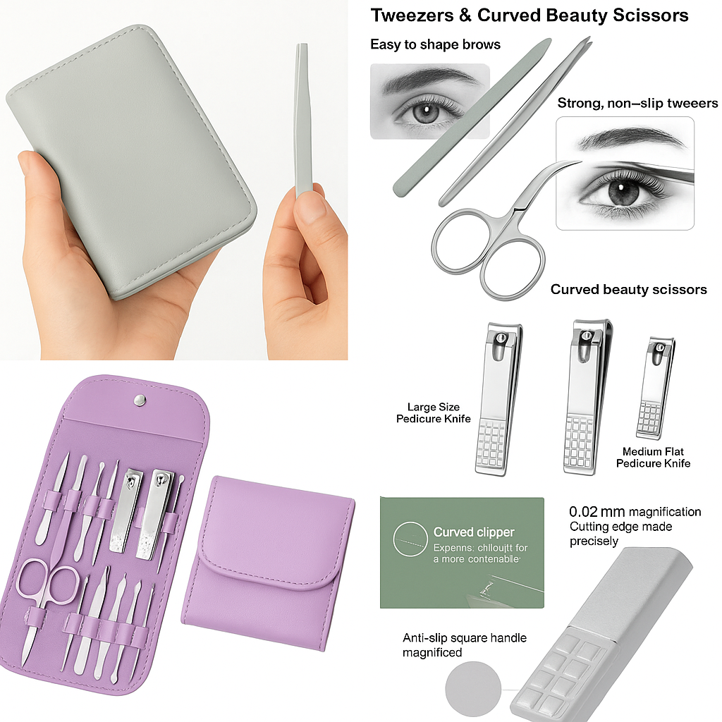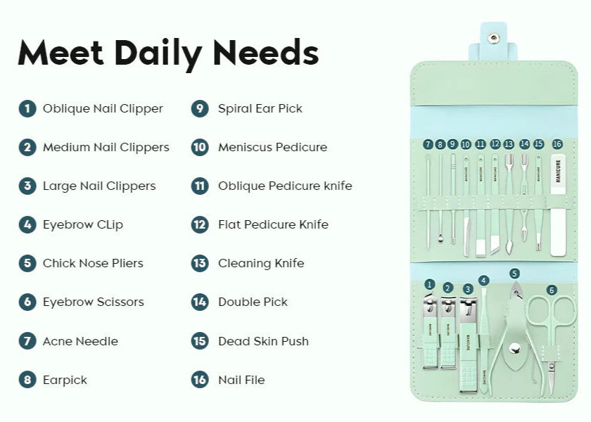 The kit includes all essential tools for trimming, shaping, and polishing nails, making it ideal for both quick touch-ups and complete grooming routines. Maintain well-groomed, beautiful nails with ease.